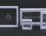 Plastový rámik na šperky s mäkkou membránou, 90x90x21 mm, v papierovom obale, možnosť potlače logom